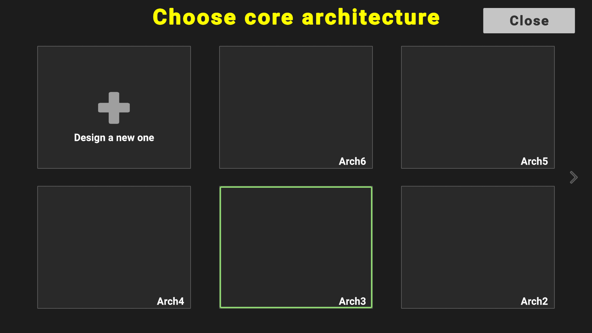 Now you are looking at this new panel. Here you will be able to choose between every core design you designed or have access that can be used with the ISA you have chosen. Its empty right now as you can see, lets click the "Design a new one"!