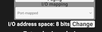 Inside the "Design focus" panel, now there is the I/O mapping. I/O is a crucial part of computers, and CPUs can handle I/O bits in two different ways, memory-mapped and port-mapped. If you select port-mapped you have to decide how large do you want the I/O address space to be.